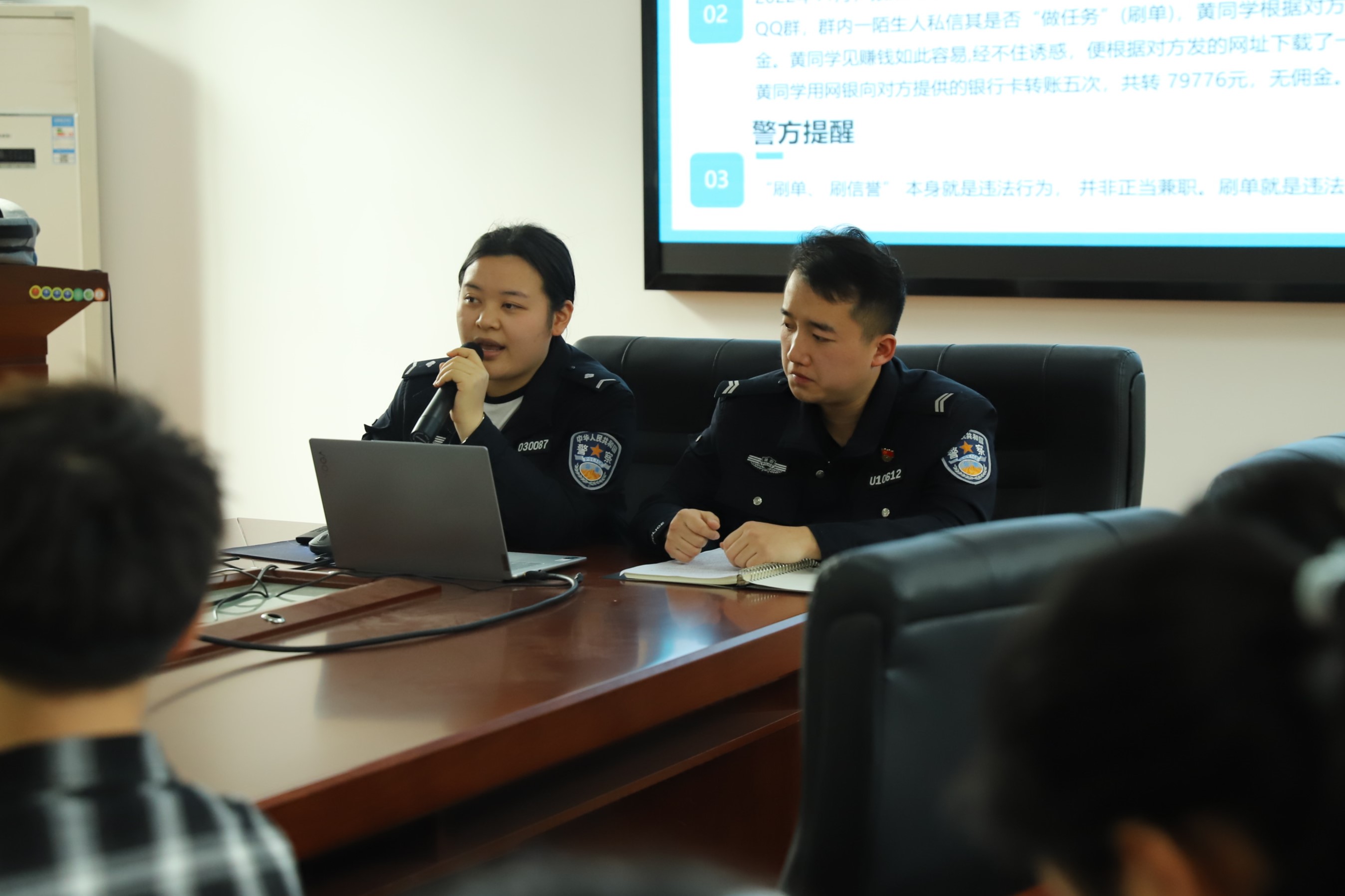 本网讯(通讯员 欧阳海方、许子鑫、吴泓锐)为提高公司员工防范电信诈骗的意识以及应对诈骗的处理能力,切实维护员工财产安全,3月14日中午,公司于第八教学楼8204会议室召开安全工作会议。参加此次会议的有公司学工办主任刘耀峰,保卫部老师武吉权,砂子坳派出所警官符梦笛、羊城,公司员工会全体成员、各班班委和部分志愿者。本次会议由刘耀峰主持。
