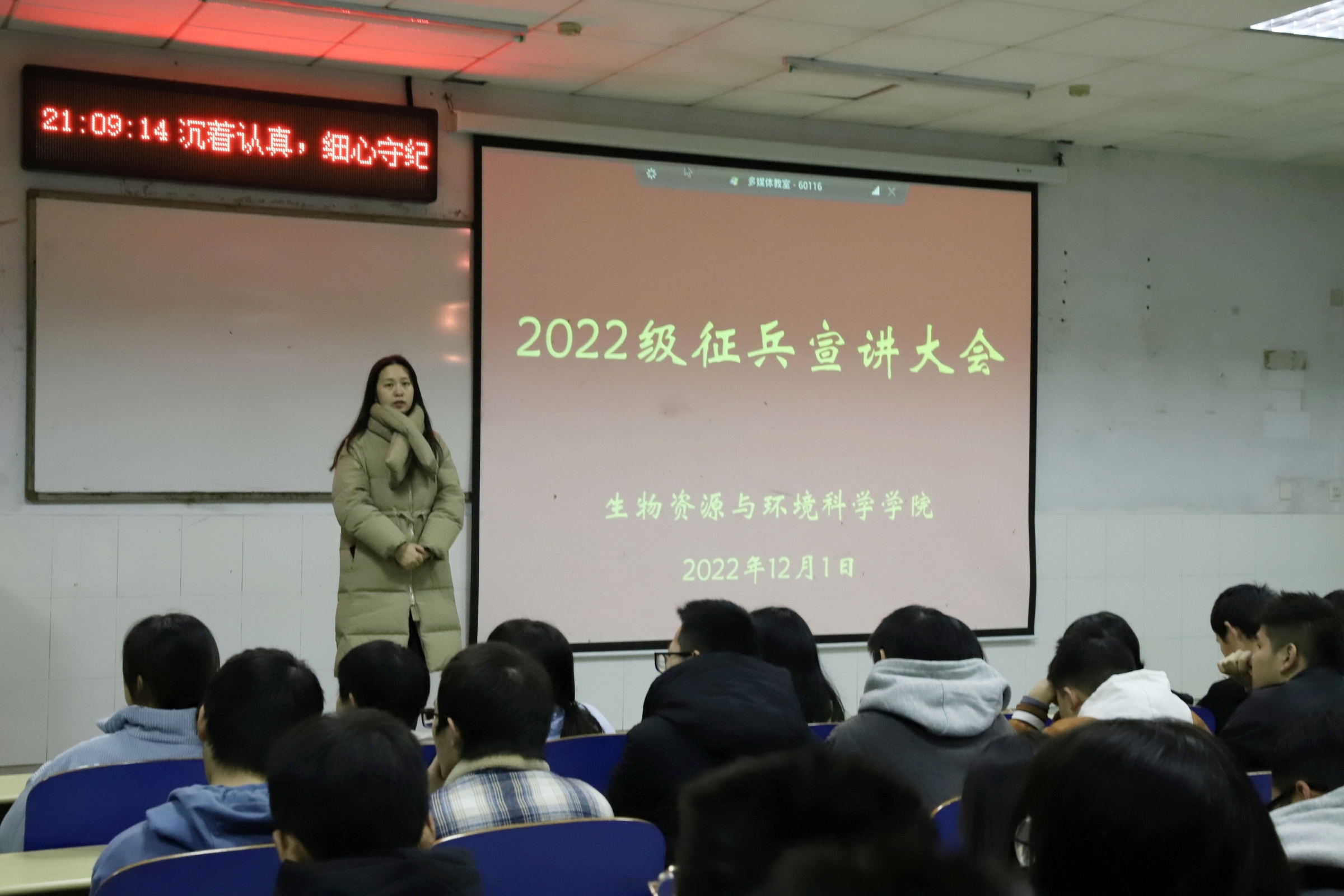 会议伊始,唐雯熙介绍了老员工参军入伍的流程,并结合近年来员工参军实际案例,详细讲解了应征入伍员工在学业、升学、就业等方面的国家优惠政策。接着,雷伟强作为退伍复学军人上台分享入伍生涯的心得、体会。雷伟强表示,军旅生活成就了他过硬的身体素质,磨砺了他顽强的意志品格,这将成为他人生中最宝贵的财富。最后,唐雯熙号召广大学子积极参军入伍、献身国防,并殷切希望同学们以国家安全、民族大业为己任,争做新时代的开拓者、奋进者。
