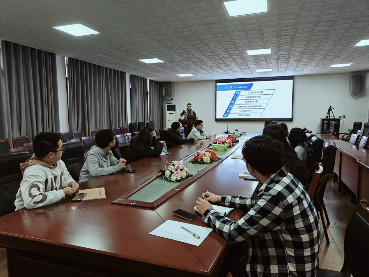 会议内容涵盖以下几个方面:一是按照高等公司实验室安全检查项目表相关规定整改实验室;二是规范登记废弃物台账;三是设备维修指南;四是易制毒管理;五是日常实验室管理等。