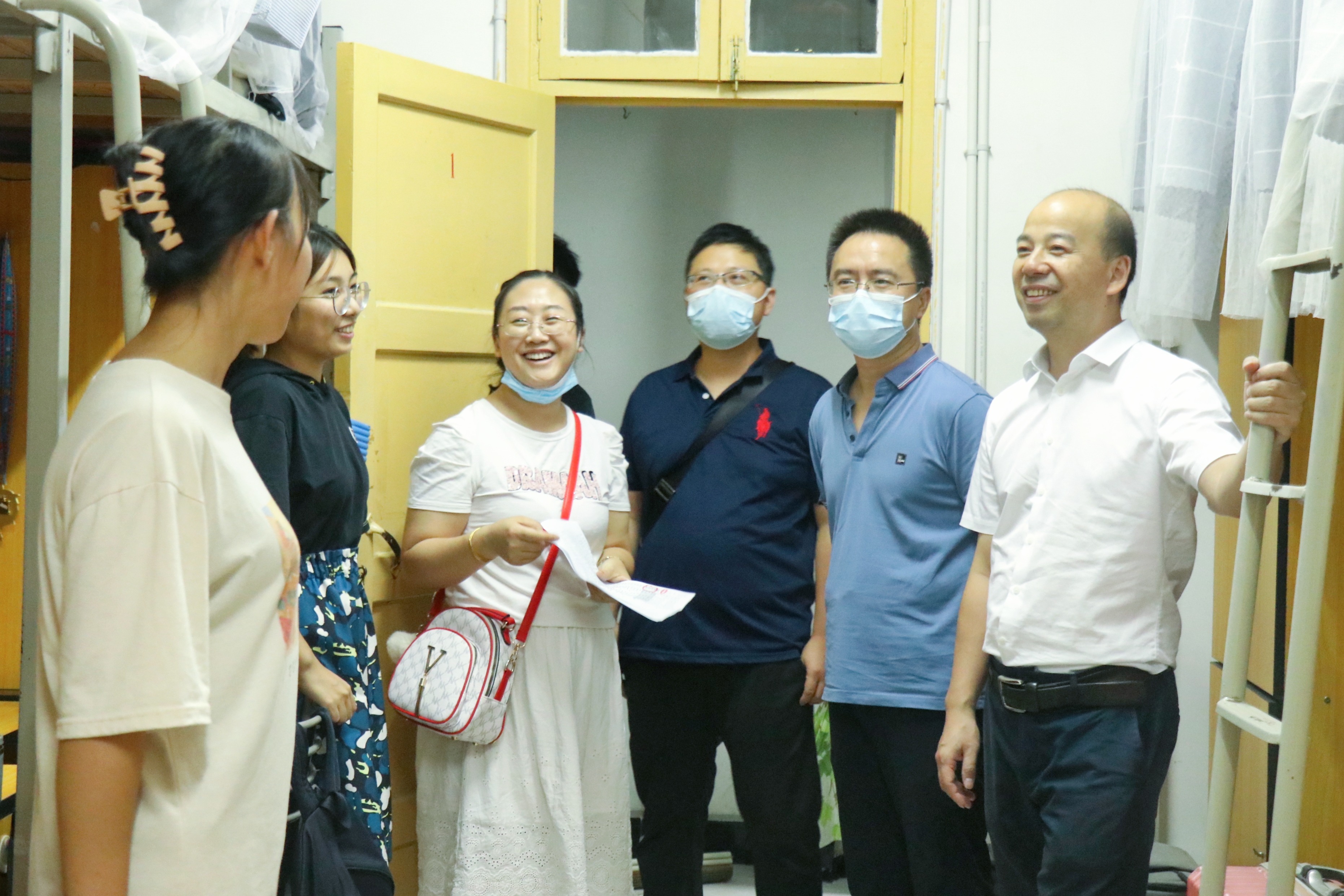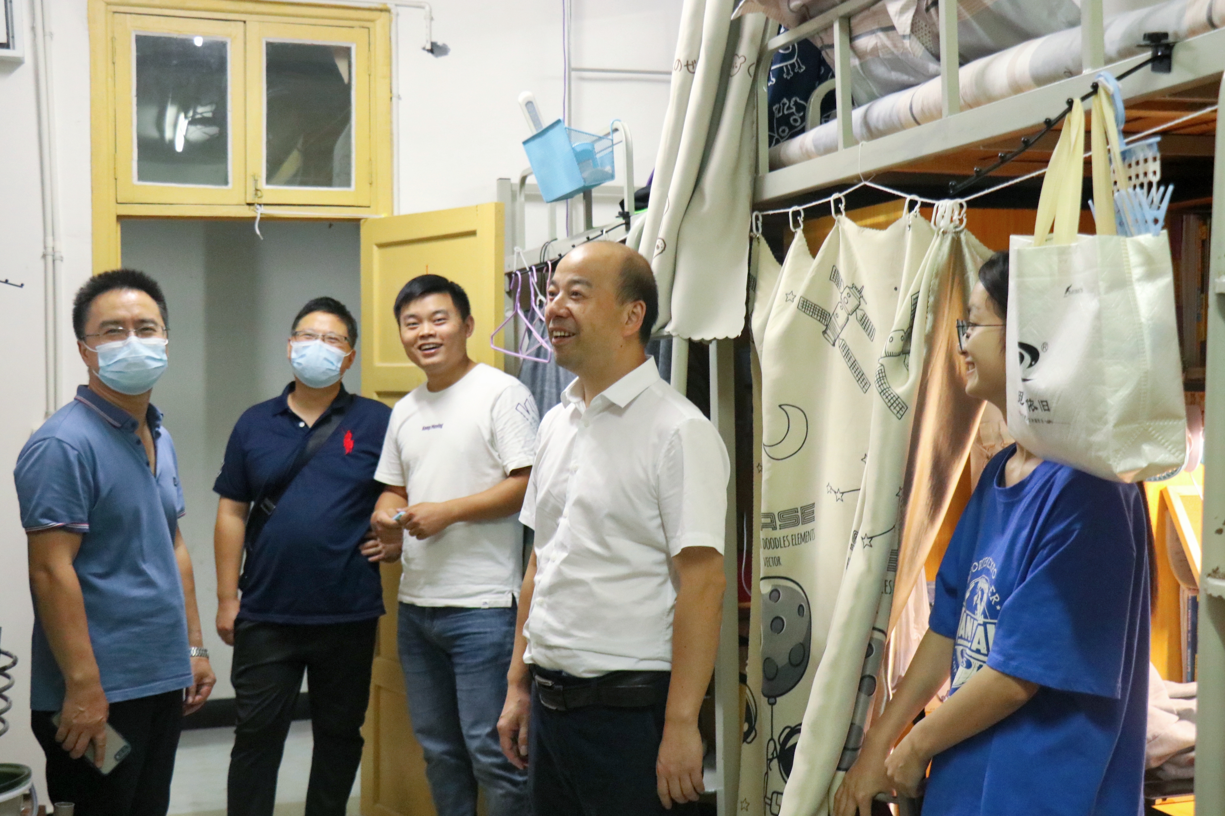 本网讯(通讯员邓伯勍 赵宸)为了解员工到校情况及开学状态,帮助员工调整心态尽快适应新学期、新阶段,9月4日晚上,公司党委书记王永强,经理彭清忠,副经理周强,辅导员以及各班班主任下寝看望员工。