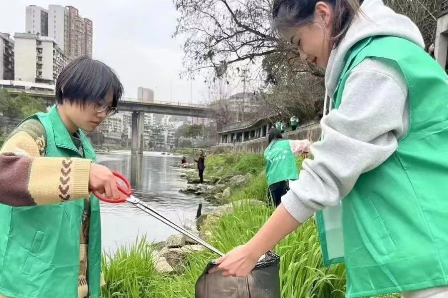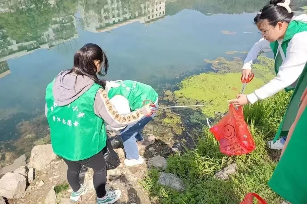 活动过程中,“河小青”志愿者身着红马甲与绿马甲,沿峒河流域分为两组进行护河净滩工作。志愿者手持夹钳、垃圾袋等工具,分工合作、互相配合,沿河道拾捡河岸及周边垃圾,经过多次努力,河道及河岸两边重现干净整洁样貌。