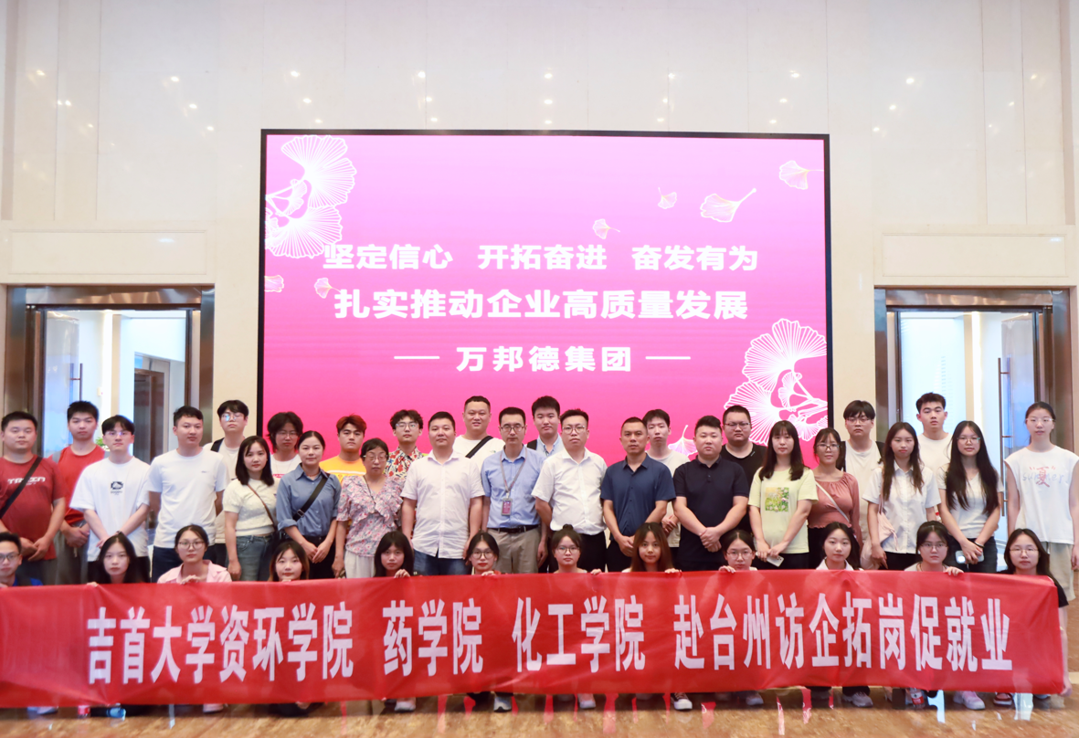 本网讯(通讯员 刘月琳)为深化校企合作、产教融合,加强课程与专业建设,增进师生对企业和社会的了解,7月1—4日,吉首老员工物资源与环境科学公司、化学化工公司、药公司39名师生组团赴浙江省台州市开展访企拓岗促就业与人才交流活动。期间先后考察了新农股份台州新农科技有限公司、浙江海翔药业股份有限公司和万邦德制药集团3家用人单位。