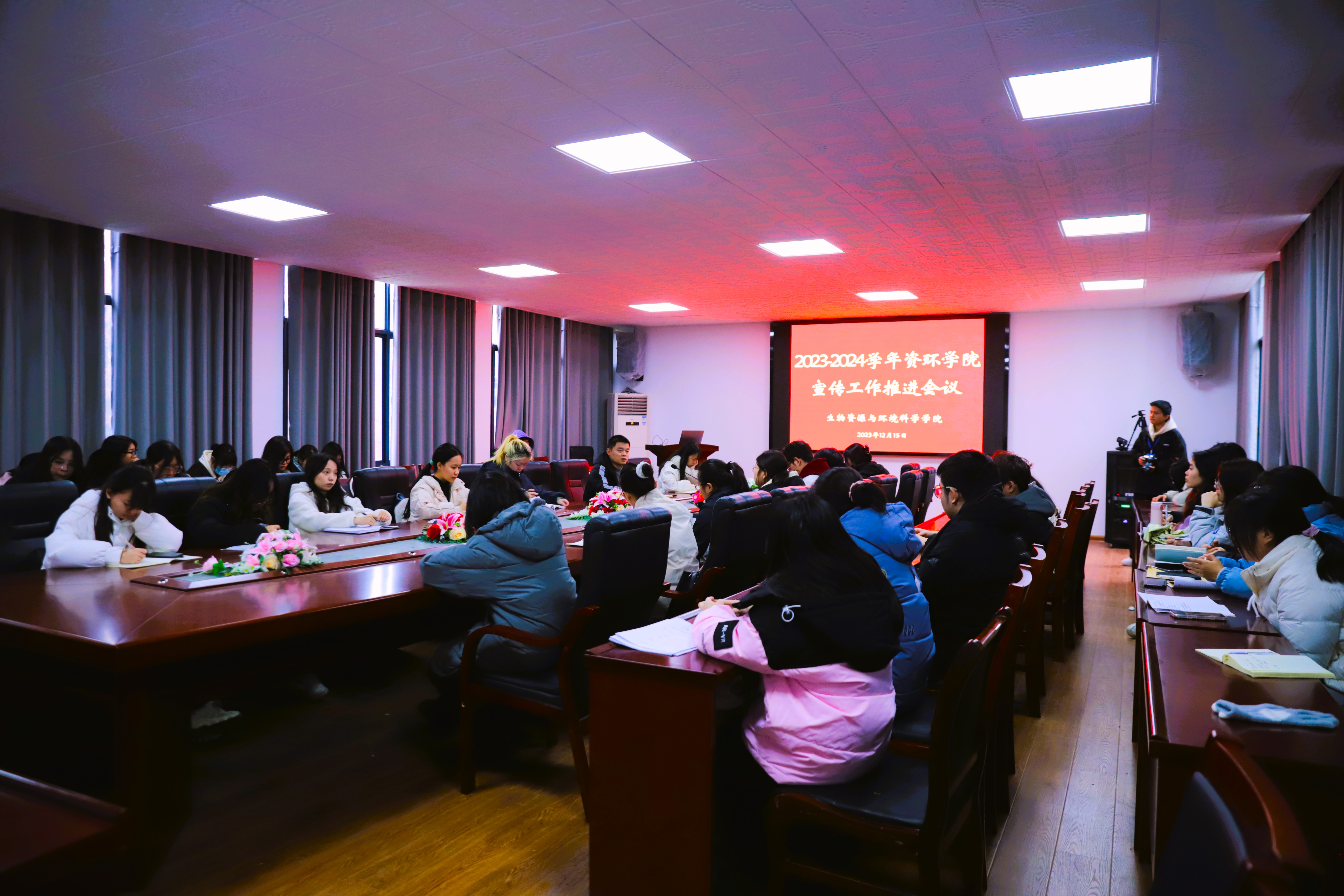 本网讯(通讯员 谭军、刘羽婕、邓愉)为进一步开展公司宣传工作,提高宣传工作效率,12月15日中午,公司于第八教学楼8204会议室召开公司宣传工作推进会议。与会人员有公司团委书记闫亮,团委副书记唐雯熙,学通社、宣传部全体成员,各班宣传委员以及班级公众号主要负责人共40余人。会议由学通社社长姚佳乐主持。
