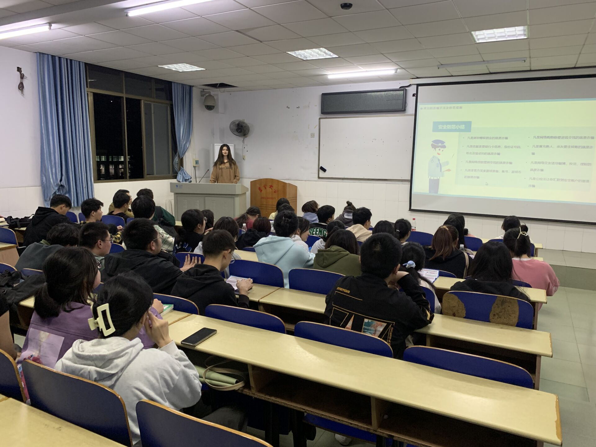 3月14至3月21日,公司各班级陆续开展了安全教育主题班会。班会上,各班班会主持人就刷单兼职、售卖游戏账号、冒充熟人来电、平台交易、裸聊骗局等多种新型诈骗手段为例,从预防诈骗、甄别诈骗等不同方面向同学们宣讲有关防诈骗的知识,要求同学们提高自身反诈意识,树立正确的价值观和金钱观。会后,同学们纷纷表示“我们都应提高警惕,不生‘贪婪之心’,警惕‘麻痹之心’,遇到疑似诈骗,及时报告老师、保卫处或派出所求助。”