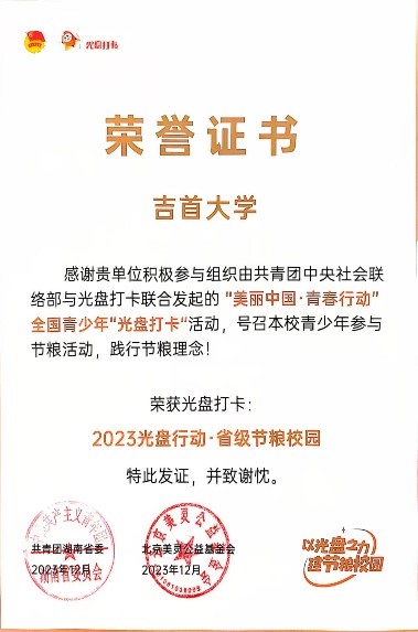 本网讯(通讯员 闫亮、胡馨怡、邓佳语)为深入贯彻习近平总书记关于青少年节约粮食的重要指示精神,落实节约粮食、反对浪费的国家战略部署,公司团委积极参与组织由共青团中央社会联络部与光盘打卡联合发起的“美丽中国·青春行动”全国青少年“光盘打卡”活动。近期,公司团委受邀参加由共青团湖南省委主办、湖南农业大学承办开展2024年湖南省“青春守护中国粮”工作现场会暨“团团助农”青少年节约粮食行动总结会,公司荣获2023年光盘行动省级节粮校园荣誉称号,公司“节粮行动”指导老师闫亮受校团委委托参加此次总结会。