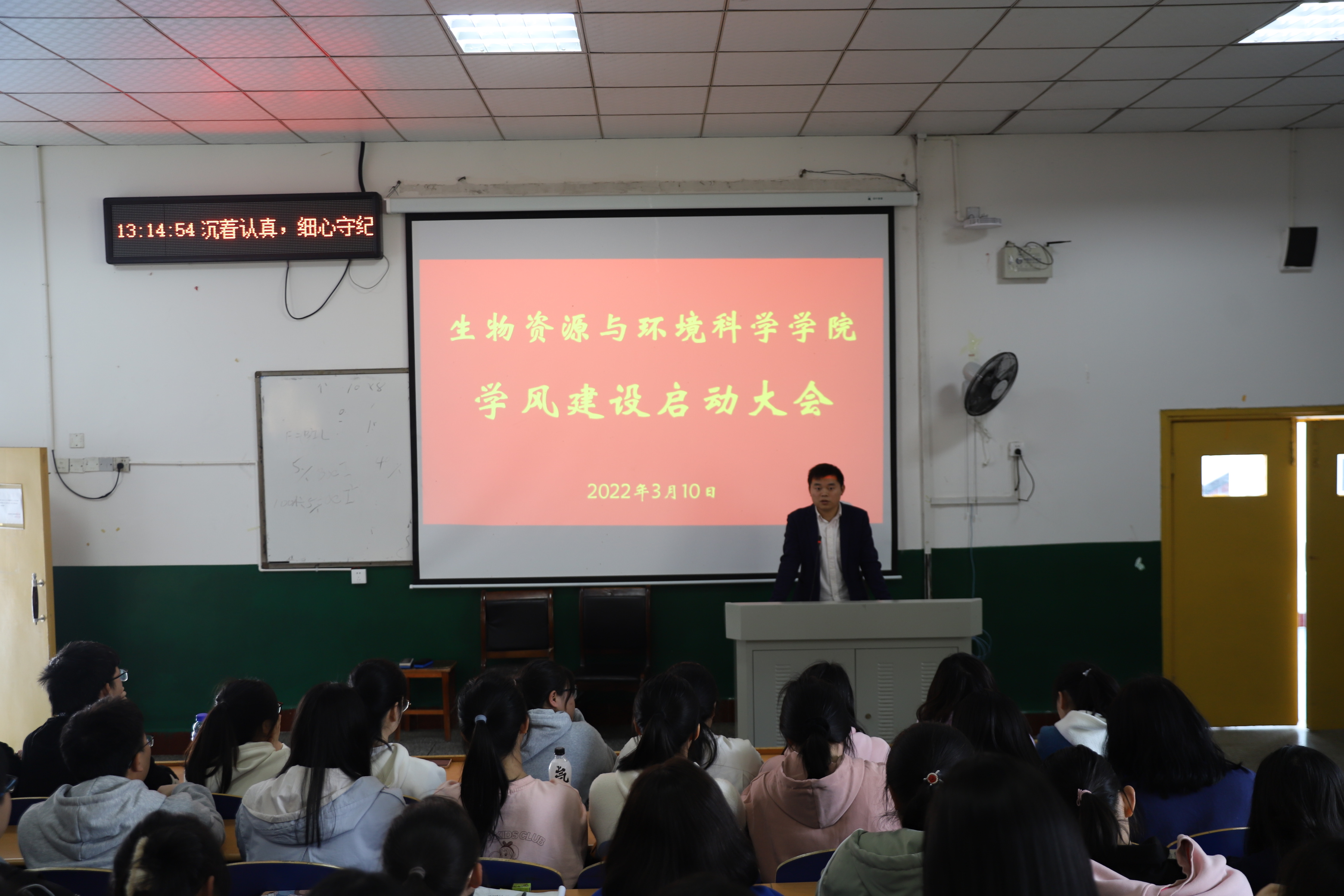 本网讯(通讯员牛亚辉、邓伯勍)3月10日中午,公司于第一教学楼1107教室召开2021级学风建设暨安全教育大会。参会人员有公司党委书记王永强,2021级辅导员闫亮、2021级生师二班班主任刘祝祥、2021级生师三班班主任贺建武、2021级环工班班主任吴涛及2021级全体同学。会议由闫亮主持。