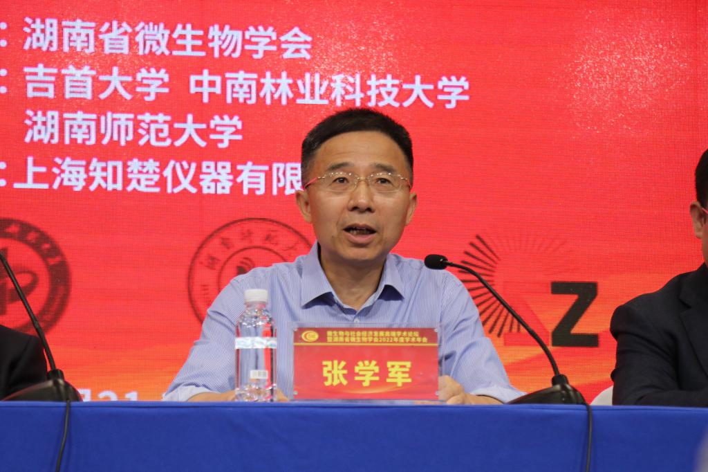 最后,张学军发表讲话,他表示微生物与人类、自然、生态之间联系密切,强调微生物在经济发展中的重要作用,并对湖南省微生物学会近几年在我省微生物与社会经济发展中的贡献给予充分肯定。同时,他对学会工作提出了两点希望:一是希望学会深入贯彻习近平新时代中国特色社会主义思想和党的二十大精神;二是希望学会加强协同创新,强化与企业间的资源共享,推进学科交叉融合。