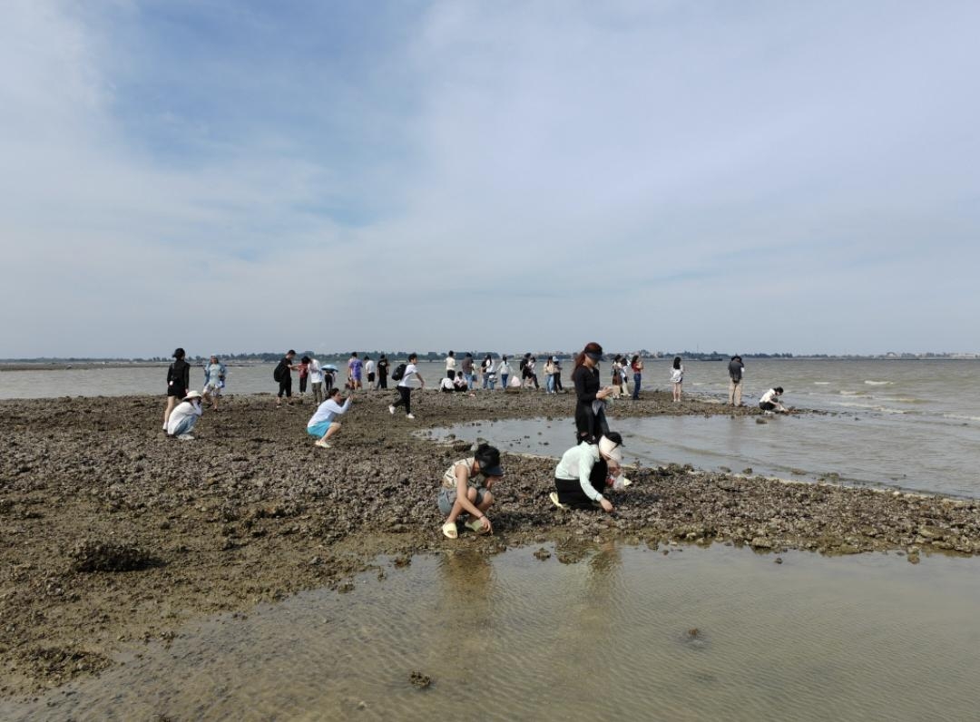 下午同学们乘观光车抵达红树林观景公园。沿观光栈道,同学们近距离地观察红树林生态环境,懂得了更多有关红树林的知识。栈道尽头,同学们来到海岸,沿海岸赶海。在同学们的一声声惊呼中,各色各样的螃蟹和小鱼不断涌现,这激起他们探索海洋和发现海洋生物的兴趣。切身的实际感受,让同学们对海洋生物的了解更加形象深刻。