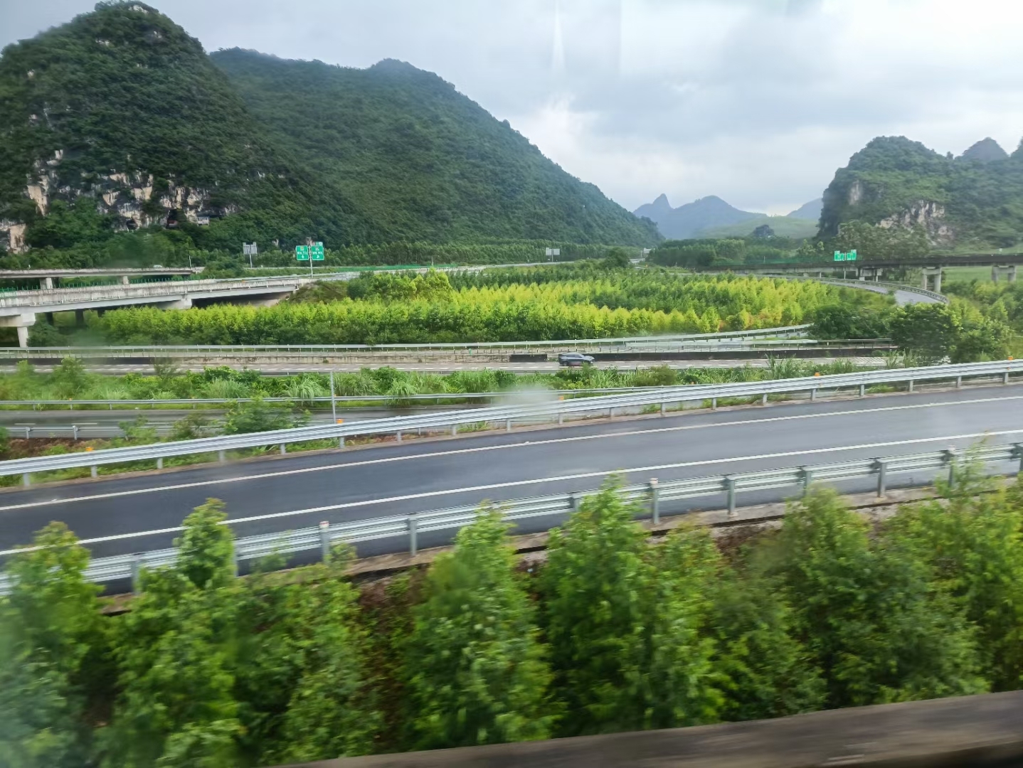 早上7点30分,全体成员在总理楼前集合拍照,然后乘坐大巴正式出发。从湖南到广西再到广东,这条线路的地貌变化丰富多样,展现了中国南方地区的自然风貌和地理特征。在湘西地区,山峦叠嶂,景色秀丽。进入广西后,地貌逐渐过渡到典型的喀斯特地形,沿途可以看到奇特的石灰岩山峰和山间盆地,山峰形态各异,宛如一幅天然的山水画卷。进入广东后,地貌逐渐向沿海平原和丘陵地带过渡,植被繁茂,热带和亚热带植物种类繁多。这条线路不仅让我们领略到祖国不同地貌的美丽风光,也为生物科学专业的员工提供了观察不同生态环境的宝贵机会。
