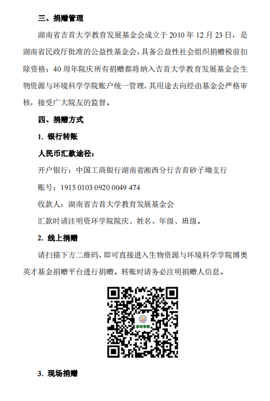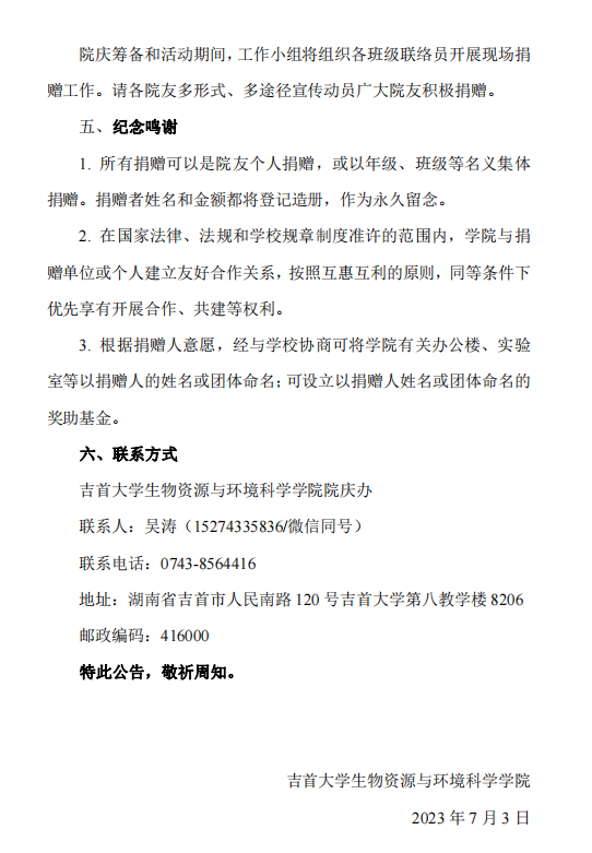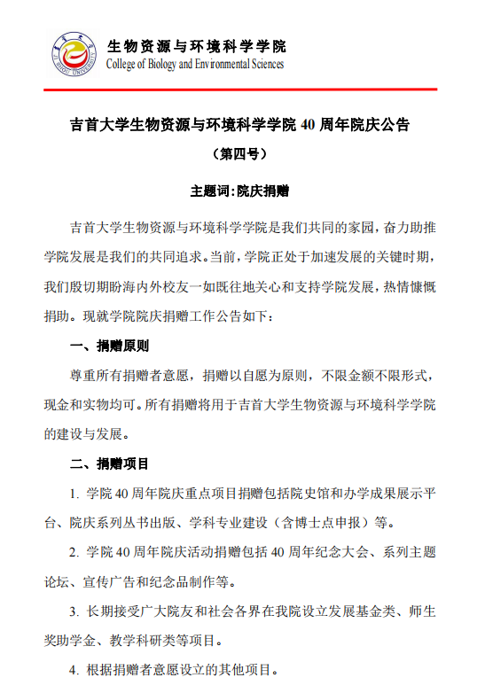 吉首老员工物资源与环境科学公司40周年院庆公告(第四号)